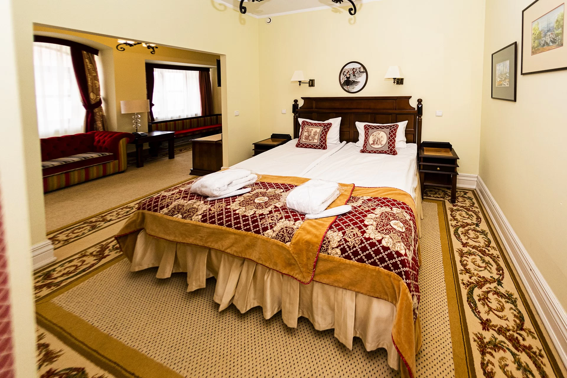 Hotelli sijaitsee entisöidyssä linnassa, jossa on